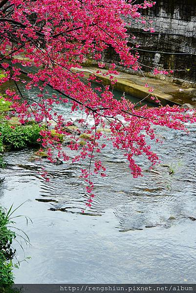 但一走進來還真有點驚訝,沿著康誥坑溪的步道兩旁一排都是櫻花樹,雖然不到滿滿的程度,但也算不錯了耶