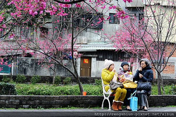雖然天氣陰冷,沒有陽光,但還是可以吸引人在這片櫻花樹下帶著東西來野餐,看這三個阿姨的打扮及在櫻花樹下吃東西的感覺,怎麼有來到日本的錯覺.