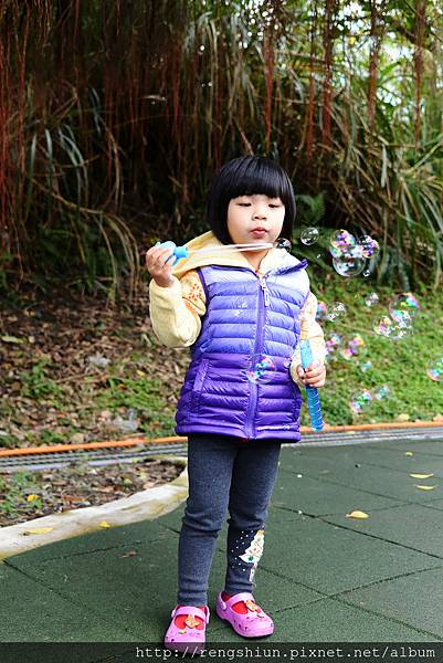 嫩還自備泡泡說著要去吹泡泡,嫩嫩今天最大的收穫應該就是學會吹泡泡了吧!本來還不太會吹, 不是太用力就是氣出不來,我教了幾次後,就放他自己玩,沒想到他自己練習了幾次後,就吹出源源不絕的泡泡了,真是太好了
