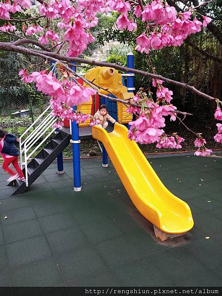涼亭旁還有一個小公園, 公園內還有一些遊樂設施,真是太好了, 太適合小孩們了,果真沒錯, 兩小人一看到溜滑梯馬上開心的跑去玩