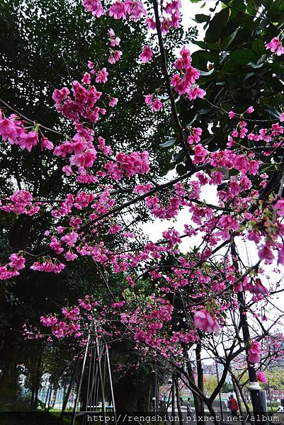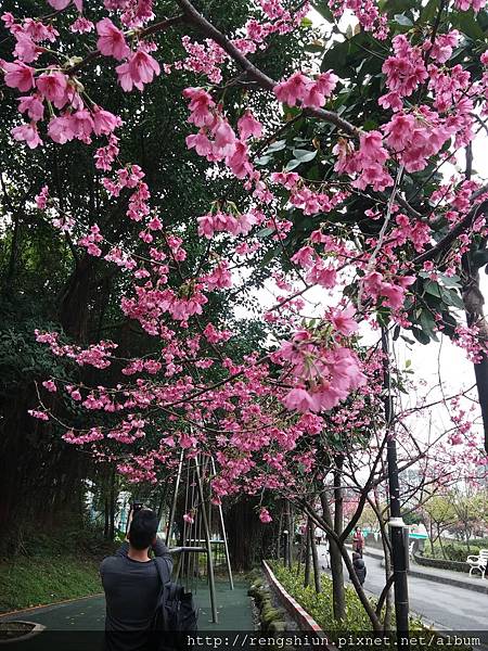 走沒幾步路就可以看到一個涼亭,原本以為這邊的櫻花應該不多,心裡其實沒有抱多大的期望,只是想著反正在家附近也只是出來走走的想法來看看而已